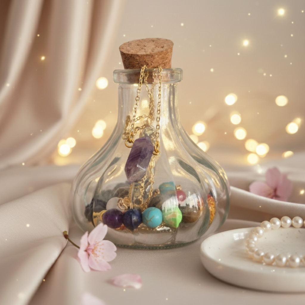 Subtelne błyski, głębokie odcienie kamieni i kosmiczne akcenty tworzą niepowtarzalną kompozycję pełną energii i tajemnicy.